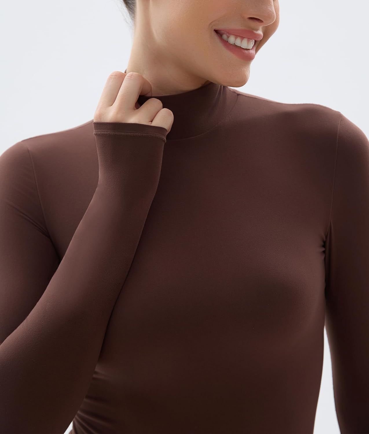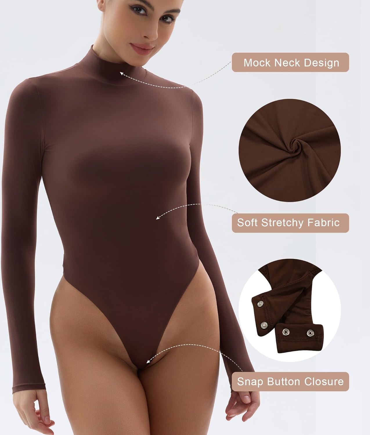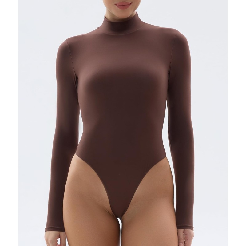 Our classic mock neck long-sleeve bodysuit is updated in lightweight, buttery soft fabric that hugs your curves. An essential styling piece to add to your rotation.