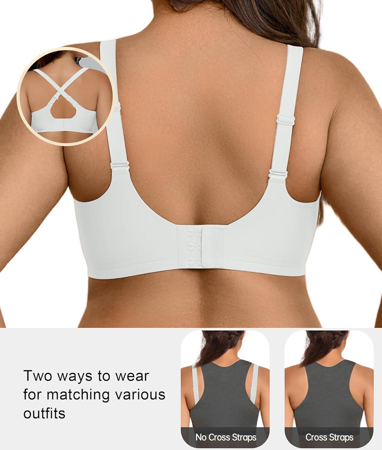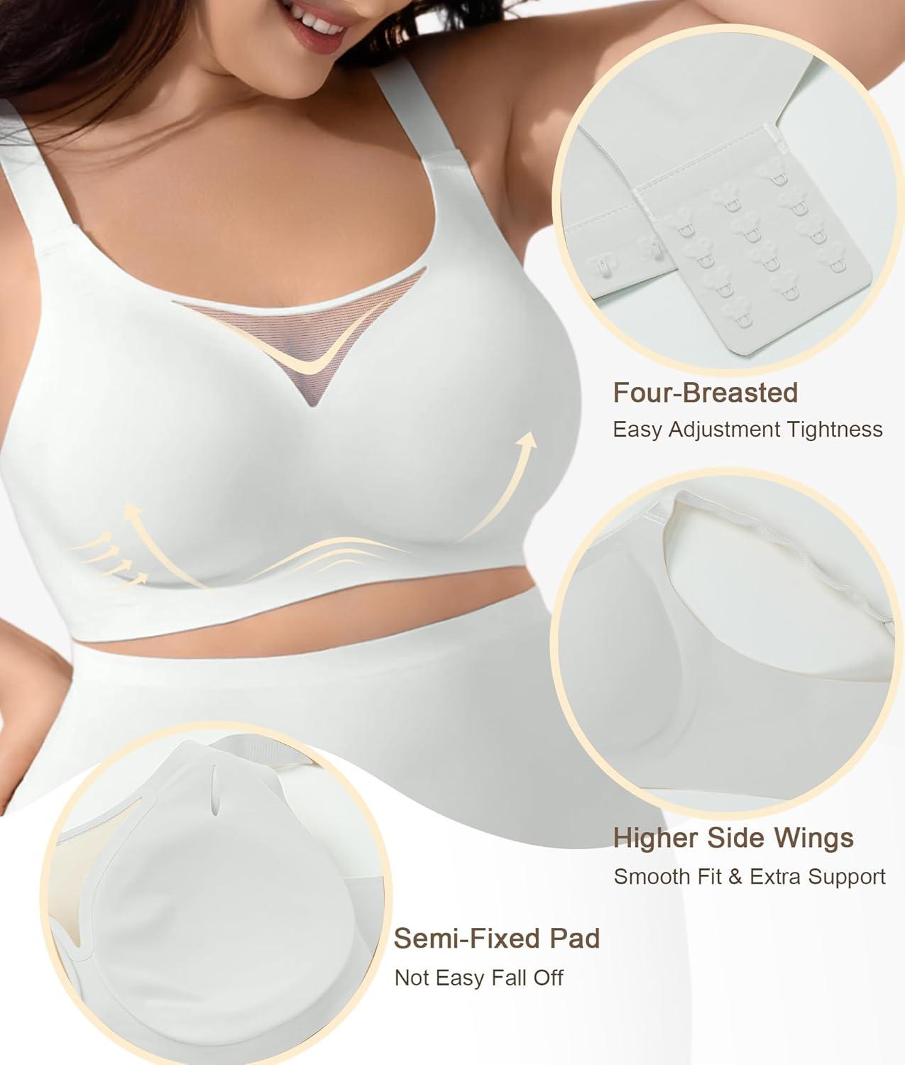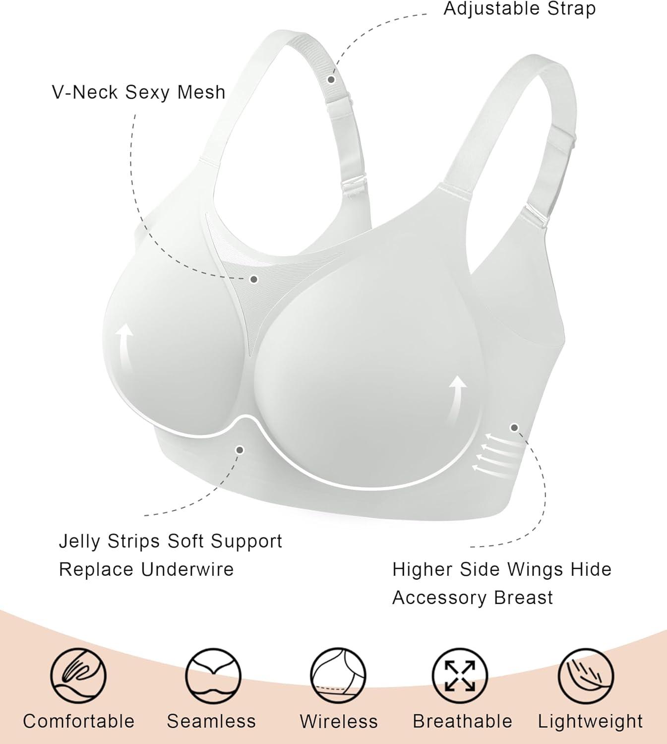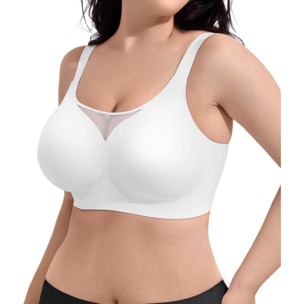 SHAPERX Wireless Bras for Women Seamless Push Up V Mesh Bralette No Underwire Full Coverage T-Shirt Bra with Removable Pads(1-white)