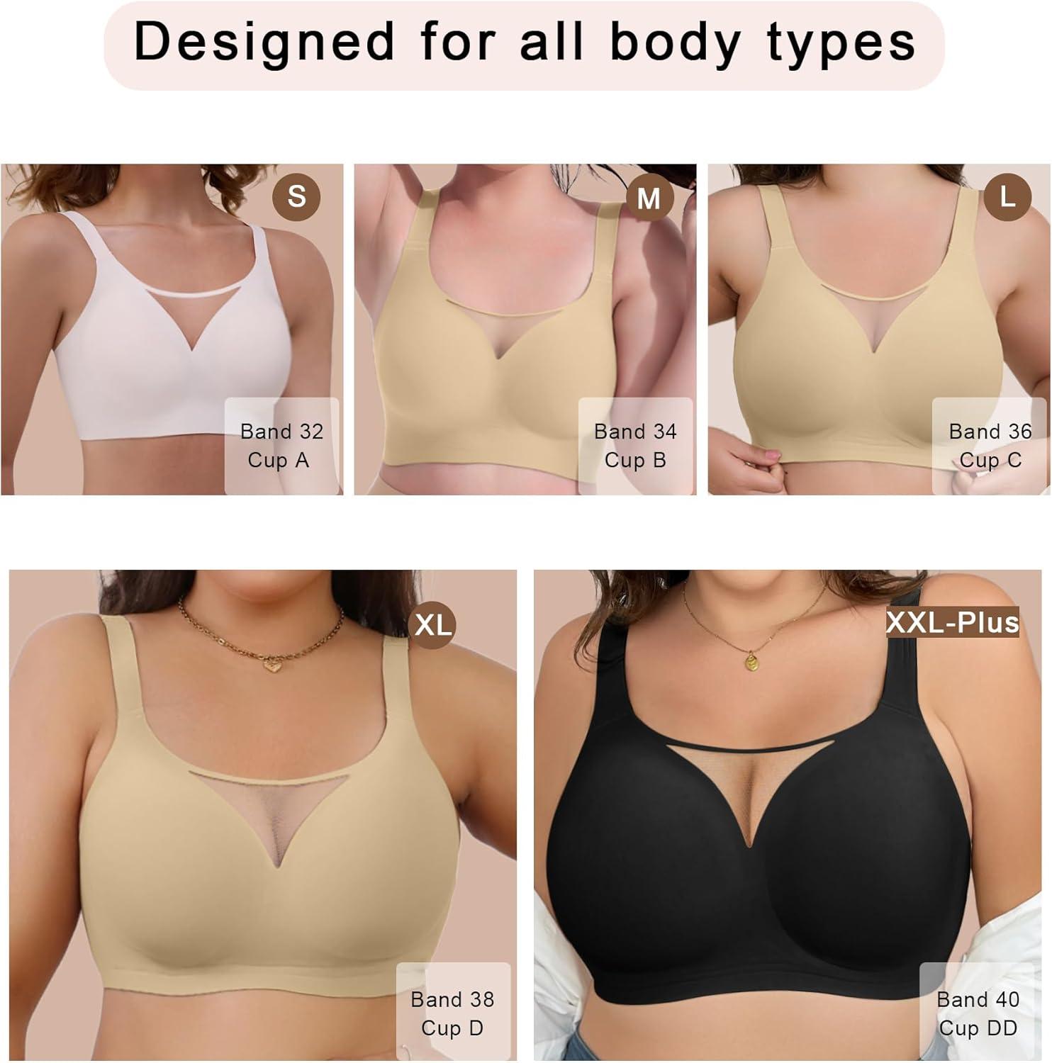 imageSHAPERX Wireless Bras for Women Seamless Push Up V Mesh Bralette No Underwire Full Coverage TShirt Bra with Removable PadsBeige
