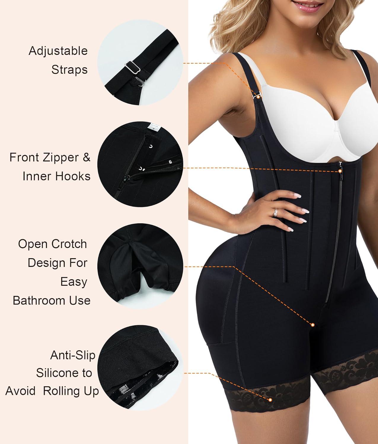 SHAPERX Women’s Fajas Colombianas Tummy Control Shapewear Postpartum Butt Lifting Body Shaper with Boned Support(Black (Zipper))