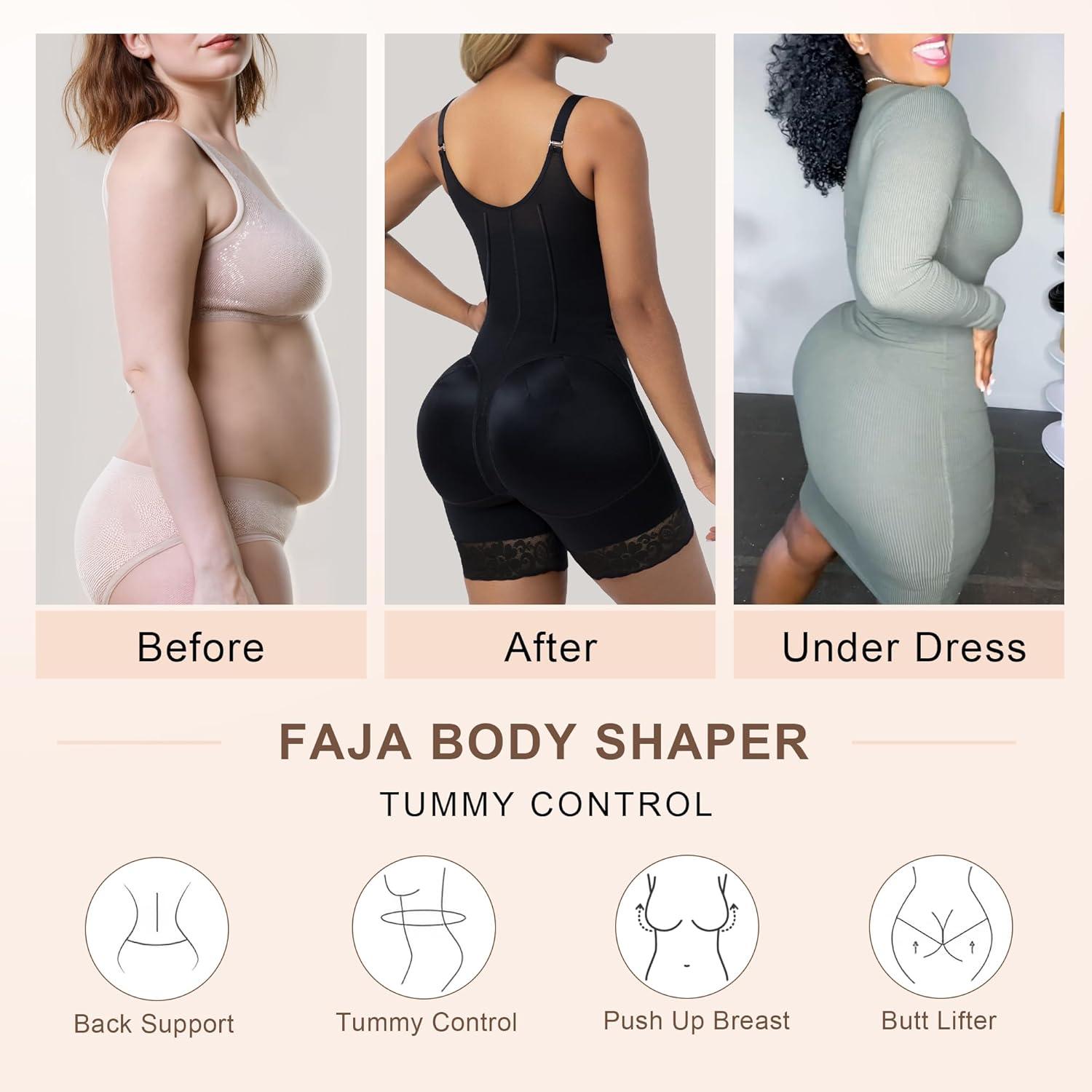 imageSHAPERX Womens Fajas Colombianas Tummy Control Shapewear Postpartum Butt Lifting Body Shaper with Boned SupportBlack Hooks